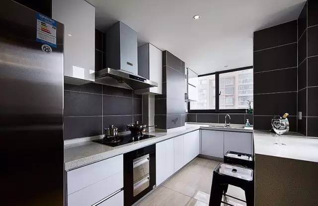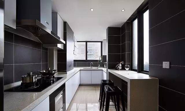 ▲ 黑色墙砖做出来的厨房透着一股高冷气质
