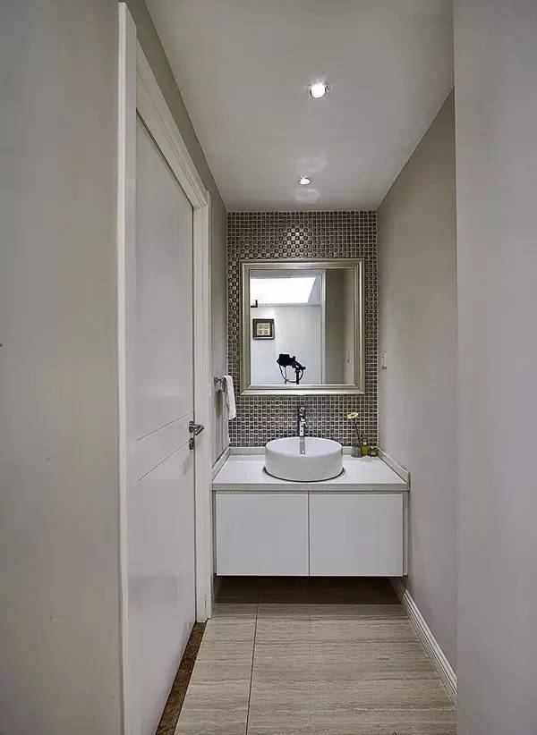 ▲ 洗手间干区同样用马赛克做背景