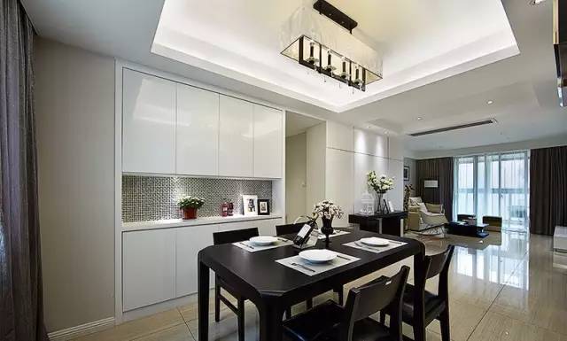 ▲ 餐厅黑色餐座椅配白色餐边柜
