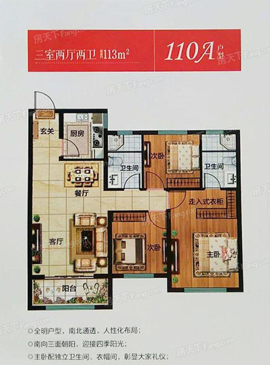高层住宅110A户型-3室2厅2卫-113.0㎡