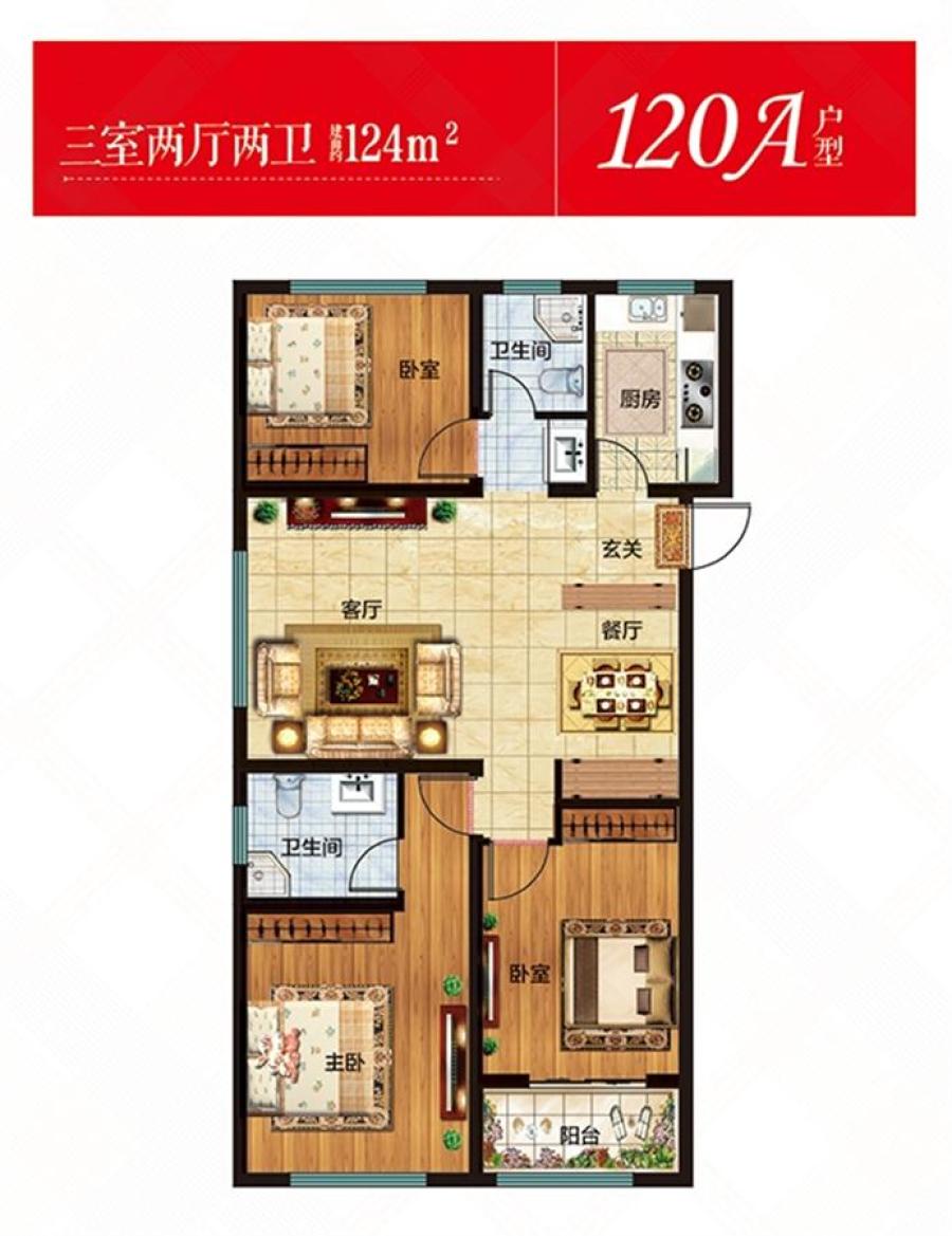 120A-3室2厅2卫-124.0㎡