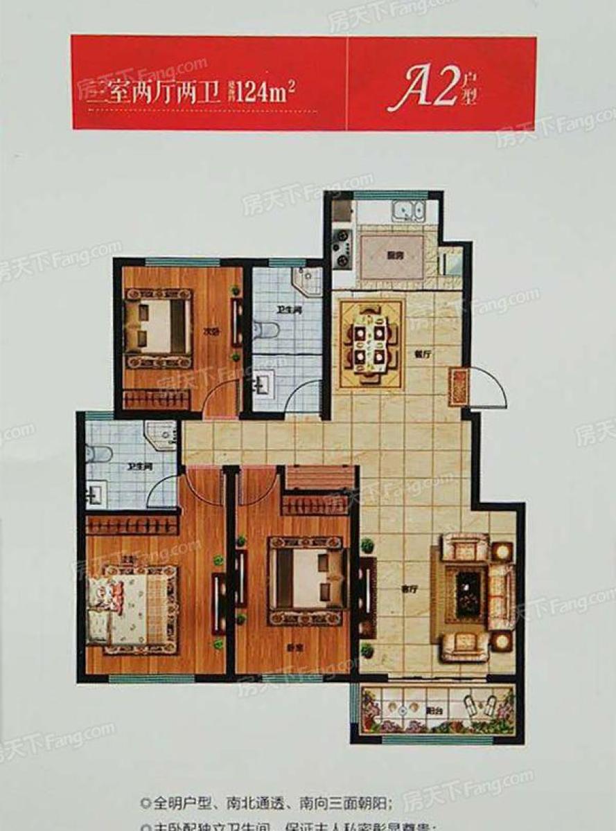 花园洋房A2户型-3室2厅2卫-124.0㎡